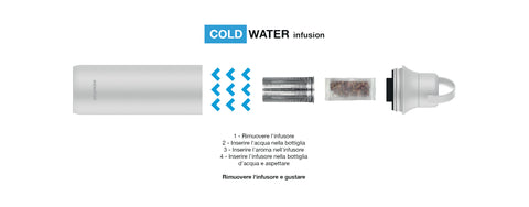 Preparare l'infuso a freddo Cool Passion è molto semplice grazie al filtro integrato della borraccia termica WEWATER. Inserisci la bustina d'infuso in almeno 200ml di acqua fredda, attendi 6-8 minuti e gusta tutto il sapore del mix Cool Passion in qualsiasi momento della giornata. La borraccia AROME, infatti, mantiene le tue bevande fredde fino a 24 ore.